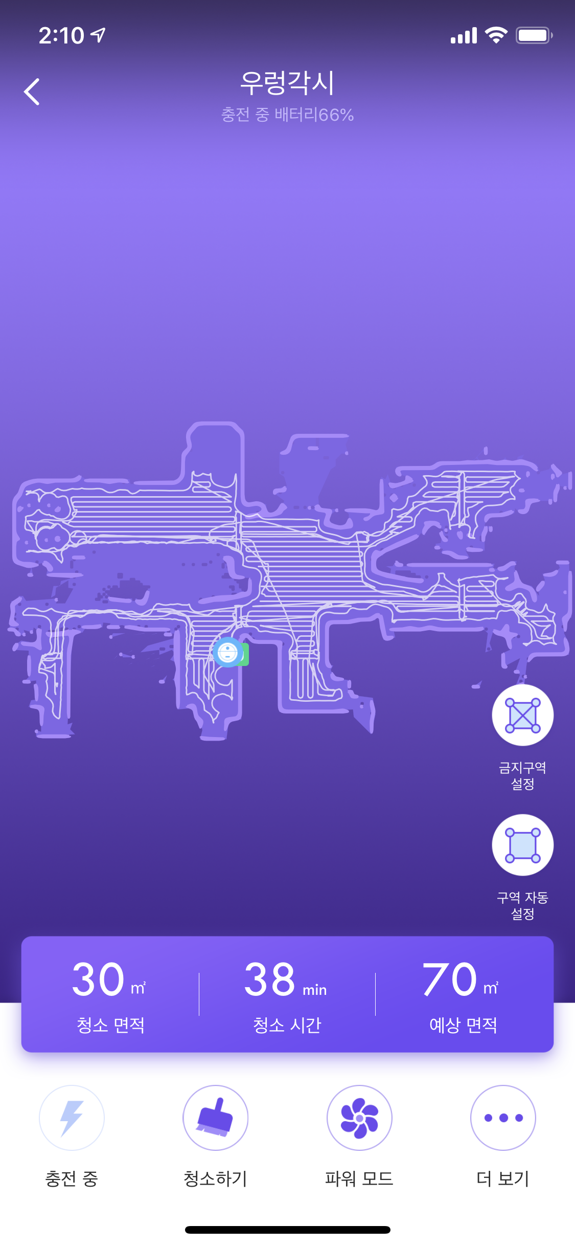 청소를 한번 시키고 나서 화면입니다. 작은 집인데 40분이나 하네요..(이름은 우렁각시 ㅋㅋ)